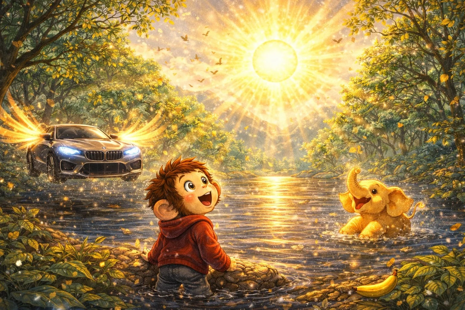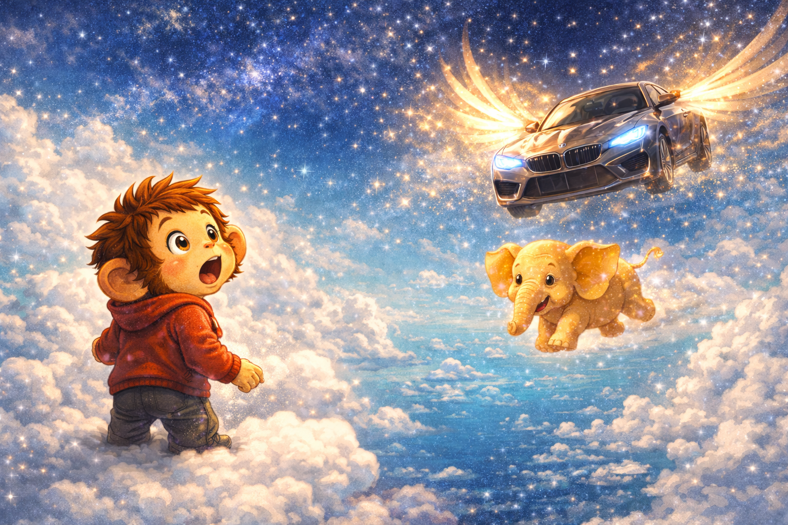 От въздуха дойде една голяяяма кола – блестяща, летяща, с криле от светлина.