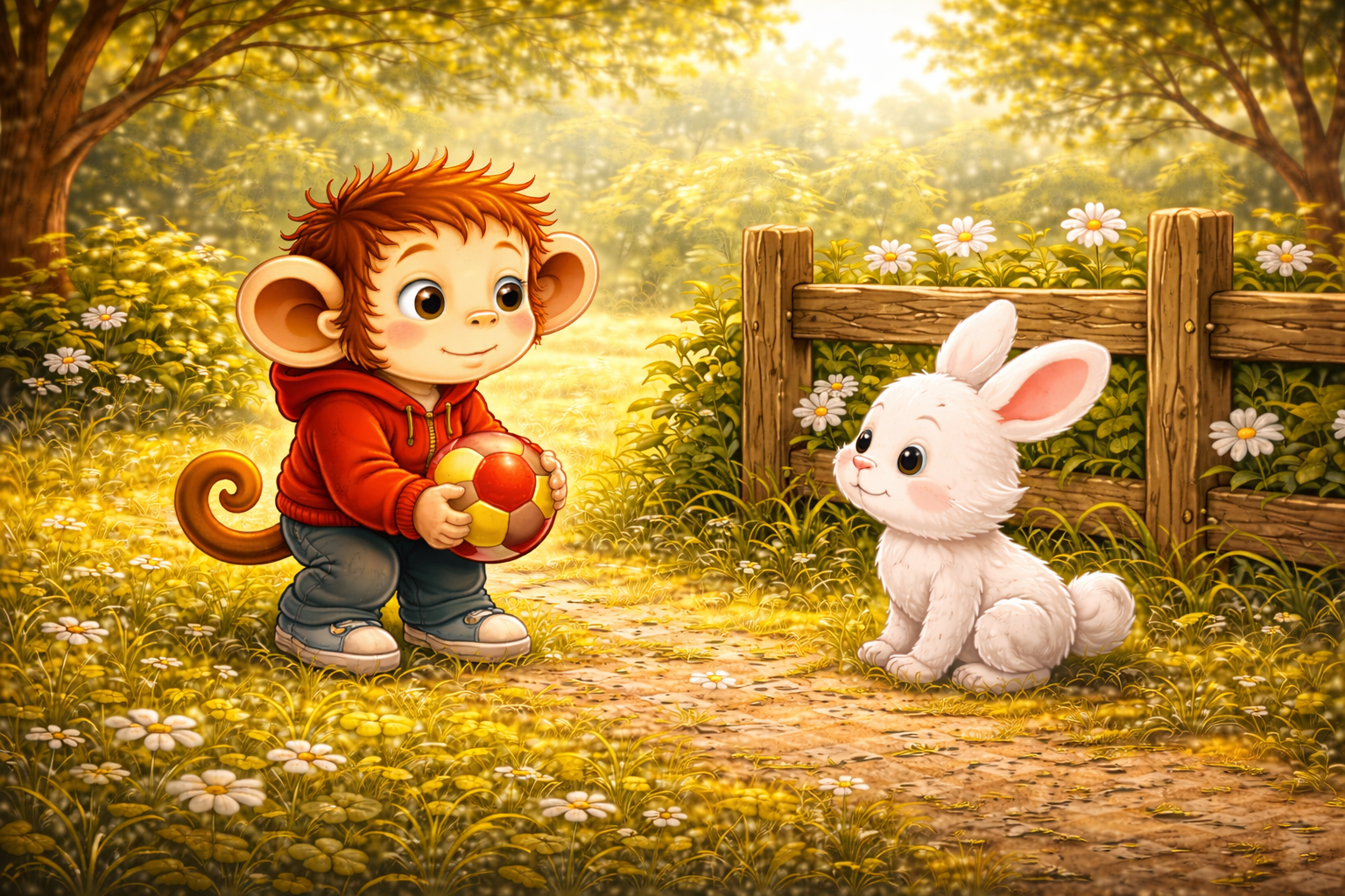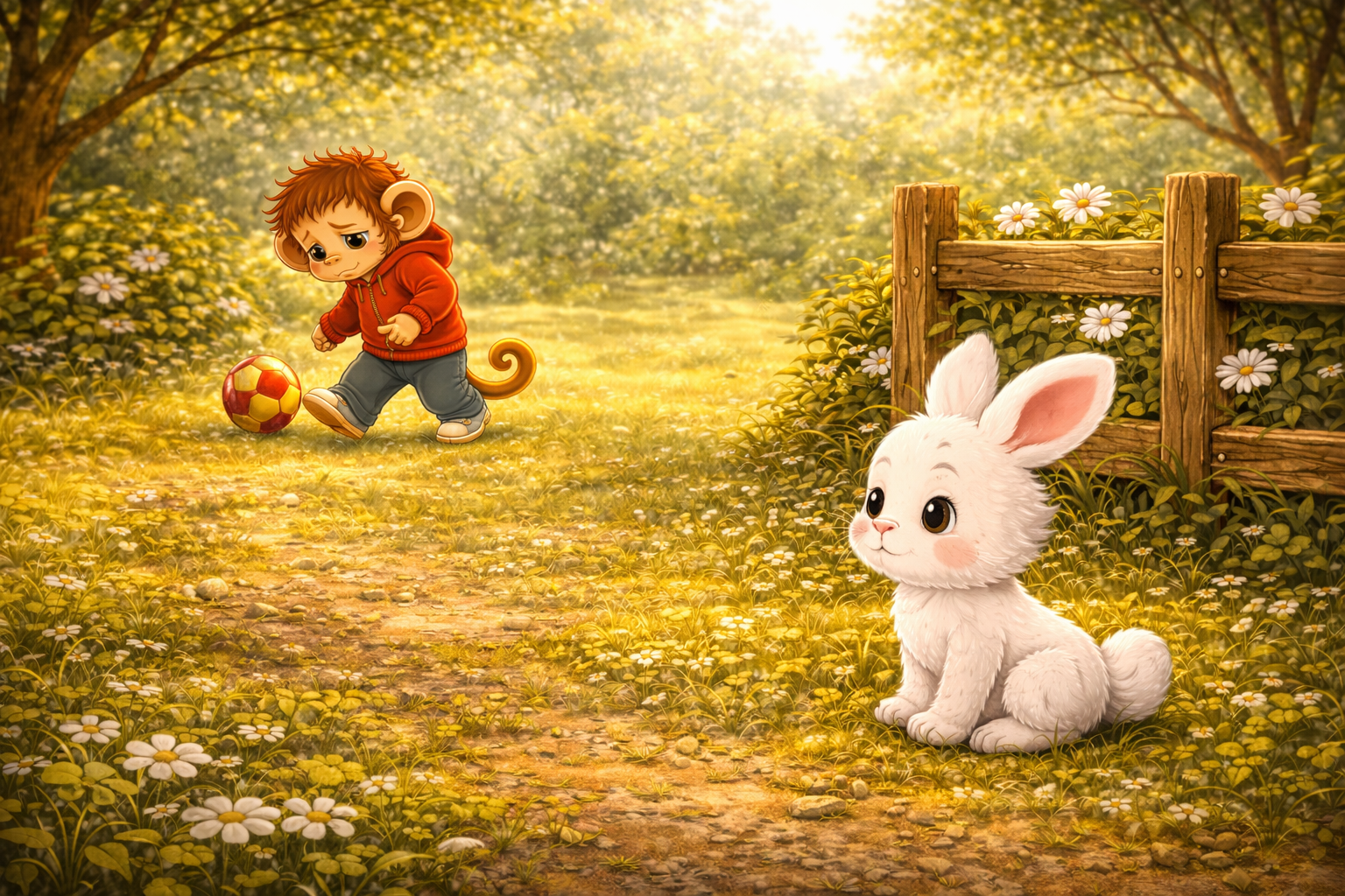 Косматко продължи да играе, но нещо вътре в него се сви малко. Той погледна зайчето пак. То изглеждаше тихо, но не тъжно. Просто чакаше.