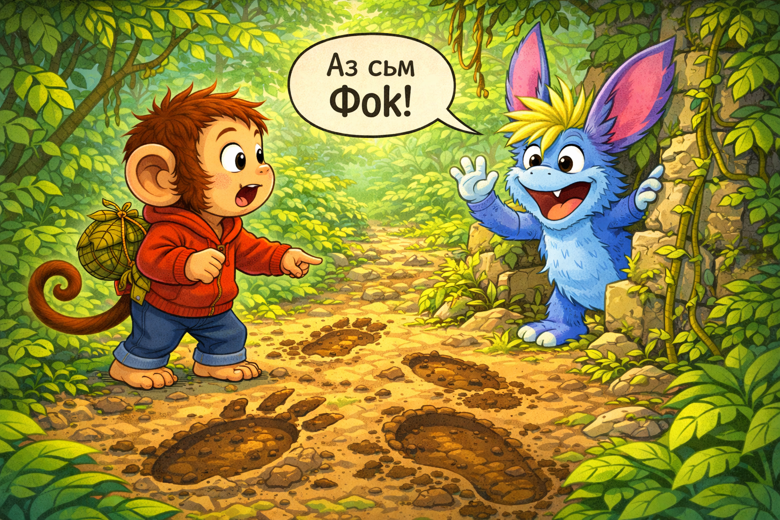 На земята, точно до едно старо дърво, имаше огромни следи. Едната приличаше на лапа, другата – на… опашка? А третата беше съвсем странна — приличаше на динозавърски крак с ботуш!