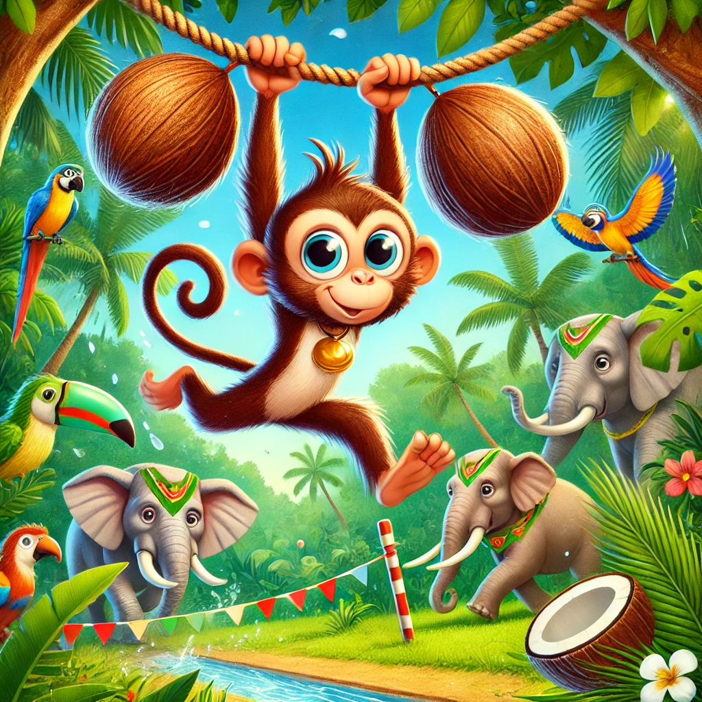 Следващото предизвикателство беше “Носене на кокоси”. Участниците трябваше да носят по два тежки кокоса и да ги пренесат през джунглата. Слонът Сами изглеждаше фаворит, но Косматко използва своята сръчност и бързина. Вместо да ги носи на земята, той ги прехвърли от клон на клон и изпревари всички.